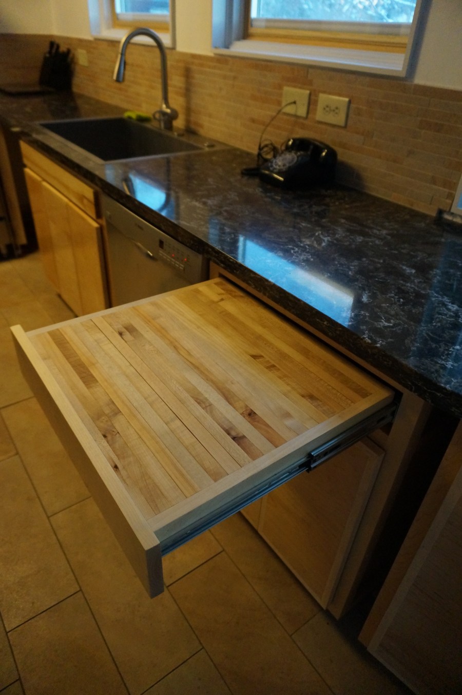 Pull out maple butcher block cutting board.