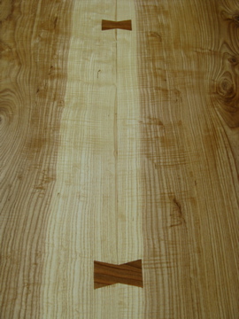 A detail of the cherry dovetail keys we used along the seam in the center of the top-with the danish oil finish, they provide a striking contrast.