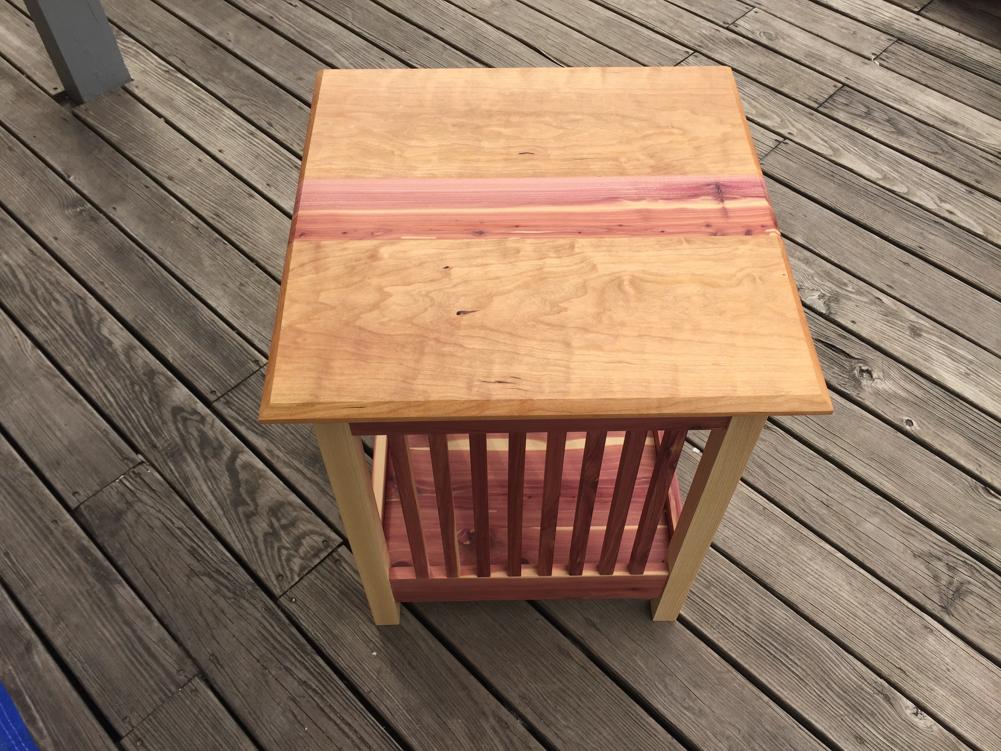 Cherry, red cedar and ash mission style end table. Danish oil finish.